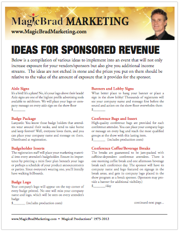 Ideas for Sponsored Revenue Event Professionals know that sponsorship support is the foundation of a successful event, and providing sponsors with an ROI (Return On Investment)