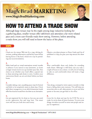 Tradeshow Tips This document is much, much more than a simple Tip Sheet. This document contains multiple tips and elaborates on each tip in detail. Trade Shows Work, but you need to know how.
