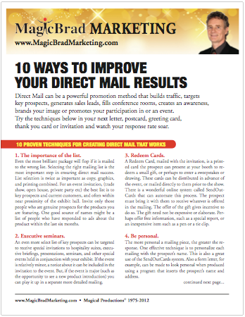 10 Way to Improve Direct Mail Results Direct Mail still works. USPS still delivers. When done right, Direct Mail can be a powerful promotion method that builds traffic, targets key prospects, generates sales Get this document and watch your response rate soar.