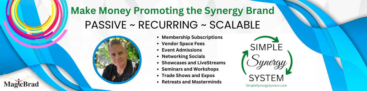 Brand Story - "The Synergy Collaborative is a community where people come together to grow, thrive, and connect. We focus on harmonizing the five pillars of life — career, finance, relationships, spirituality, and wellness — by providing practical guidance, meaningful connections, and opportunities to succeed together. Led by MagicBrad, we don’t just share knowledge — we create environments where people succeed together."